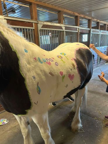 · 1h d'équitation par jour, beaucoup d'activités dirigées avec les chevaux : travail au sol, voltige, peinture sur chevaux, déguisements, maquillage, création de scénario et montage d’un vidéoclip, blacklight, biscuit et popsicle pour chevaux, compétition équestre et encore plus !