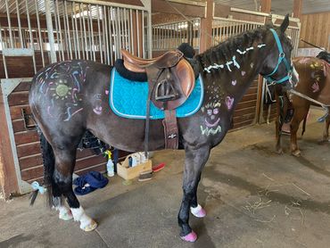 Il nous fera plaisir de vous accueillir à la Ferme pour une expérience festive personnalisée : 2 heures d'activités avec les chevaux : peinture et décoration, jeux et animation à cheval et balade à l'extérieur selon les conditions météo. Nous avons un manège intérieur.